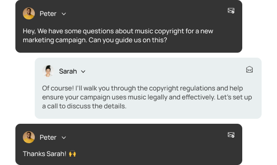 Every Enterprise customer gets a dedicated account manager to support your needs. From music curation to copyright questions, we’re always here to help.