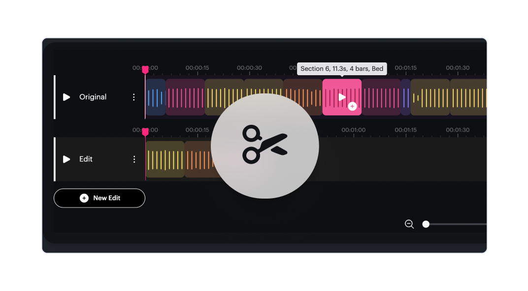 Never worry about editing music for your podcast again. Use the power of AI to create shortened audio, intros, outros, and more.