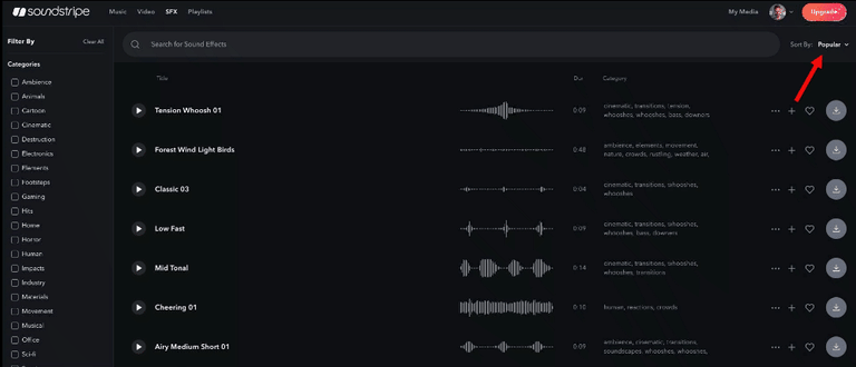It really is that simple to find the new SFX from Soundstripe. So go ahead and give it a shot!