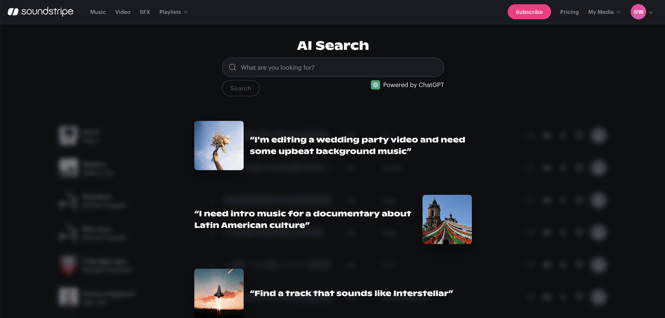 Unleash the power of Soundstripe's AI-integrated music search and unlock a world of possibilities. Discover the perfect soundtrack effortlessly, allowing your projects to flourish like never before. Head over to our music search page and give AI Search a try!