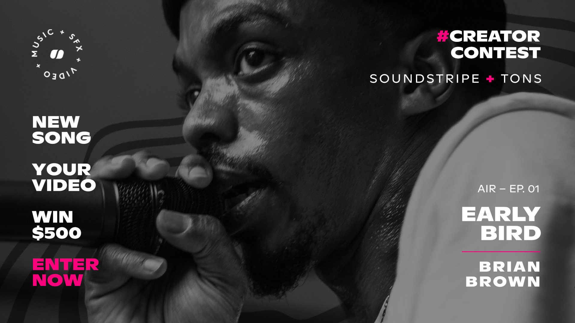 To celebrate this month’s Artist in Residence, we are hosting a creator contest for a chance to win $500. All you have to do is license Brian Brown's new single, "Early Bird," for an original video and upload that video to Instagram, Facebook, or Twitter — just make sure you tag @WorldOfBrown and @SoundstripeMusic.