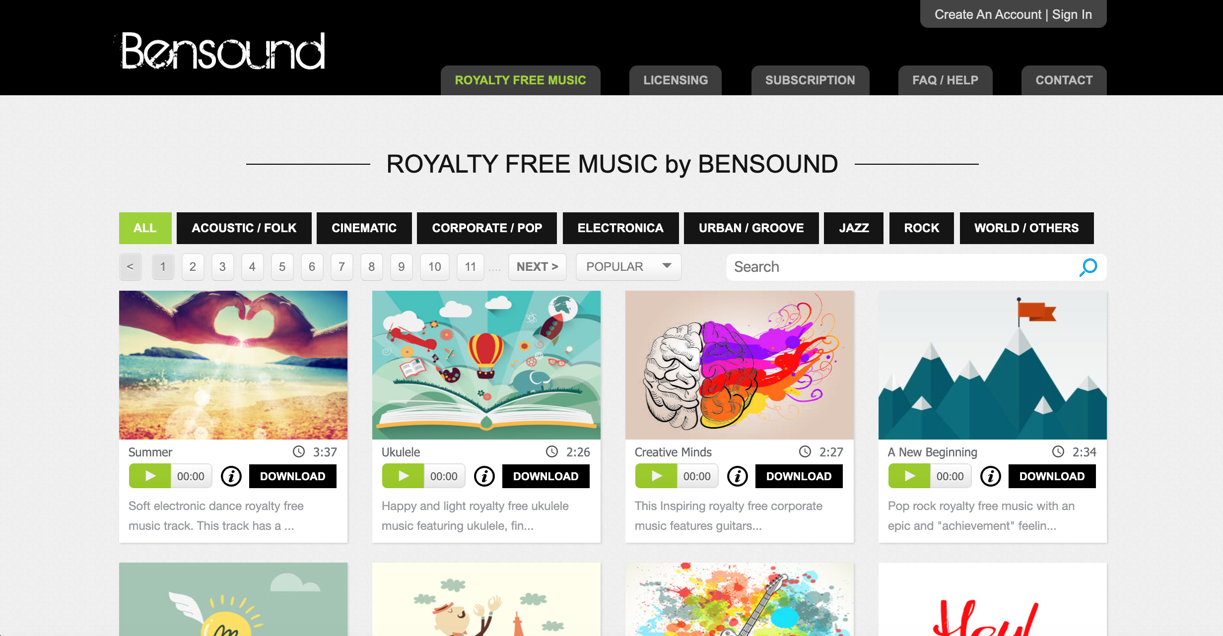 Another popular option for free music is finding solo artists who distribute their music for free. Artists like Bensound, Josh Woodward, and Scott Buckley are just a few examples of people sharing their music in exchange for composer credit in the final product.