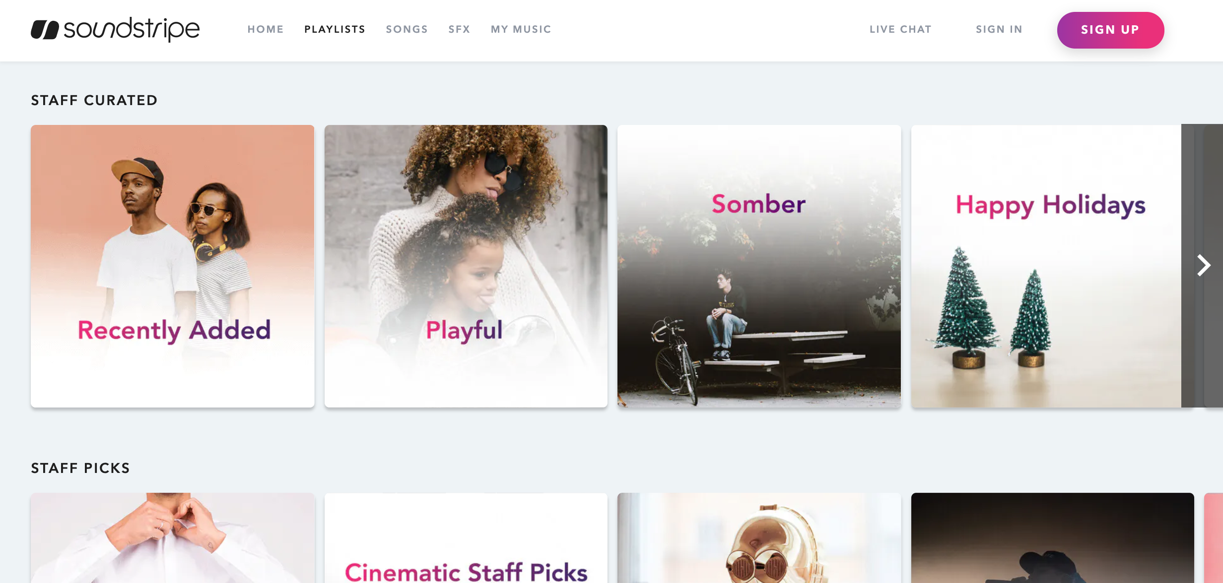 You have a few other options, though. There are companies — like Soundstripe — that offer libraries of royalty-free songs because they cover the royalty fees for you.