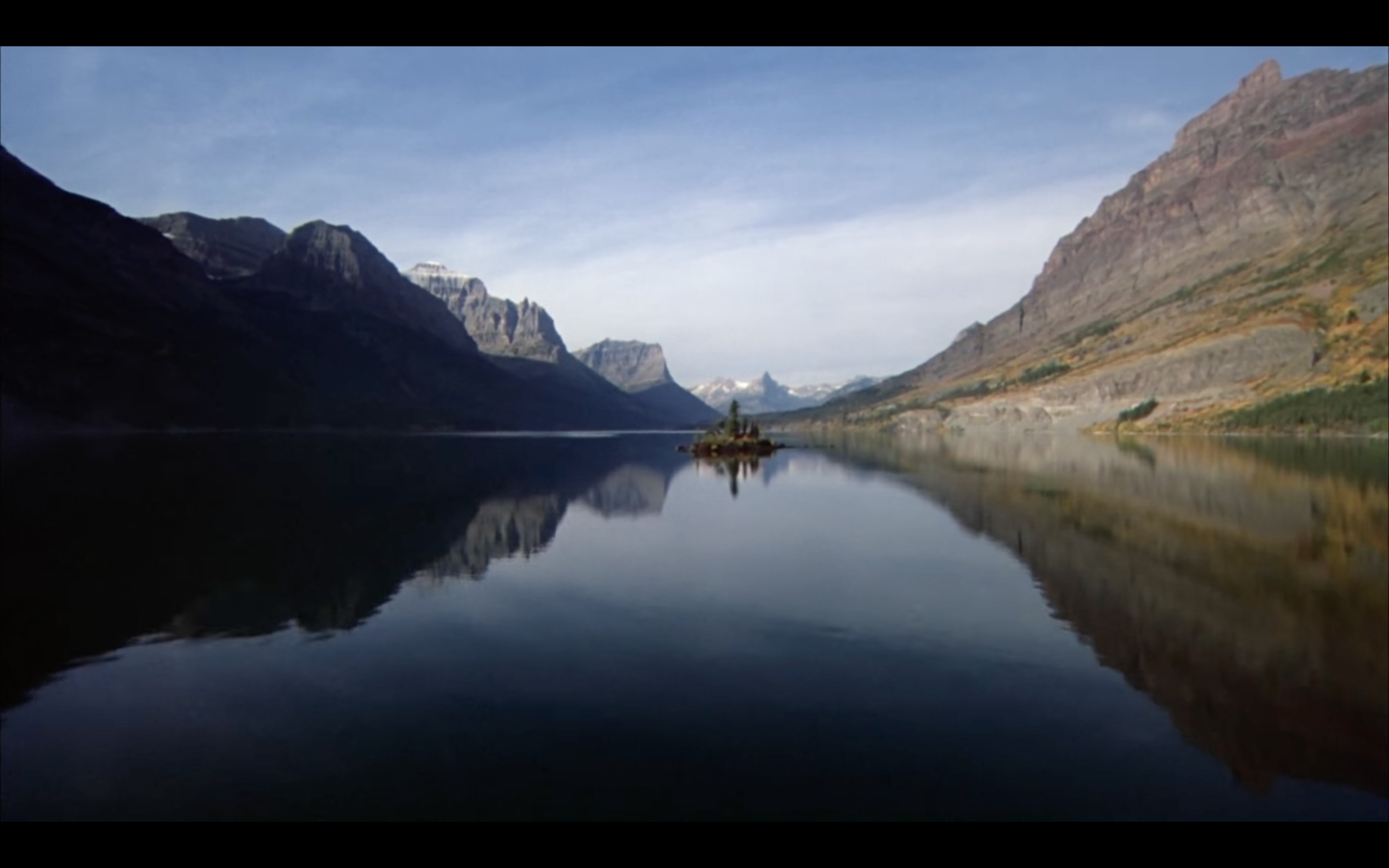Presented as the opening title sequence, this aerial shot tracks the Torrance family’s trip into the mountains. But the long shot does more than just establish the setting and location.