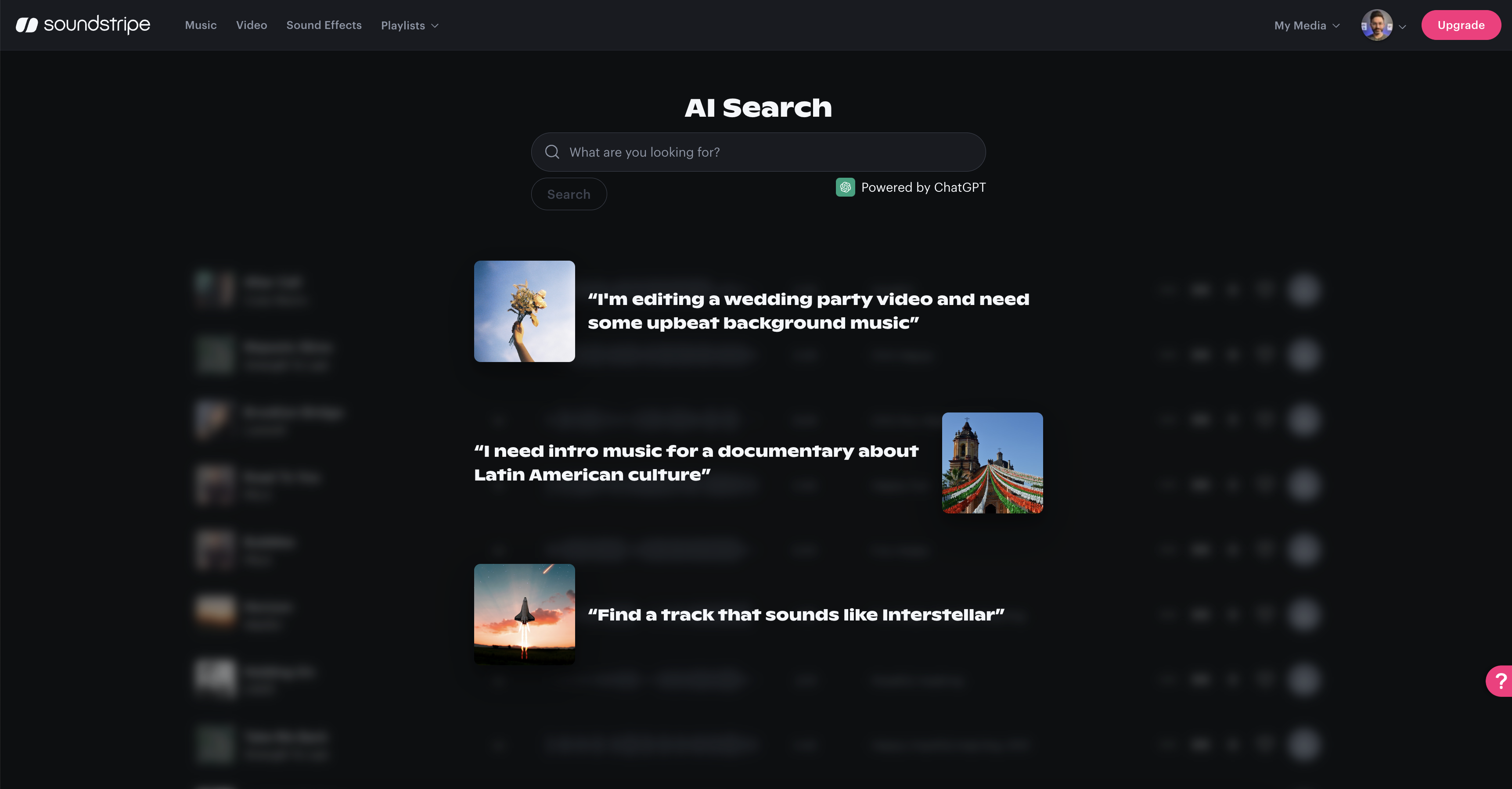 Soundstripe's AI Music Search is a game-changing feature that harnesses the power of artificial intelligence to streamline your music search process. It uses advanced algorithms to analyze various audio elements, moods, and other musical characteristics to provide you with precise and efficient results.