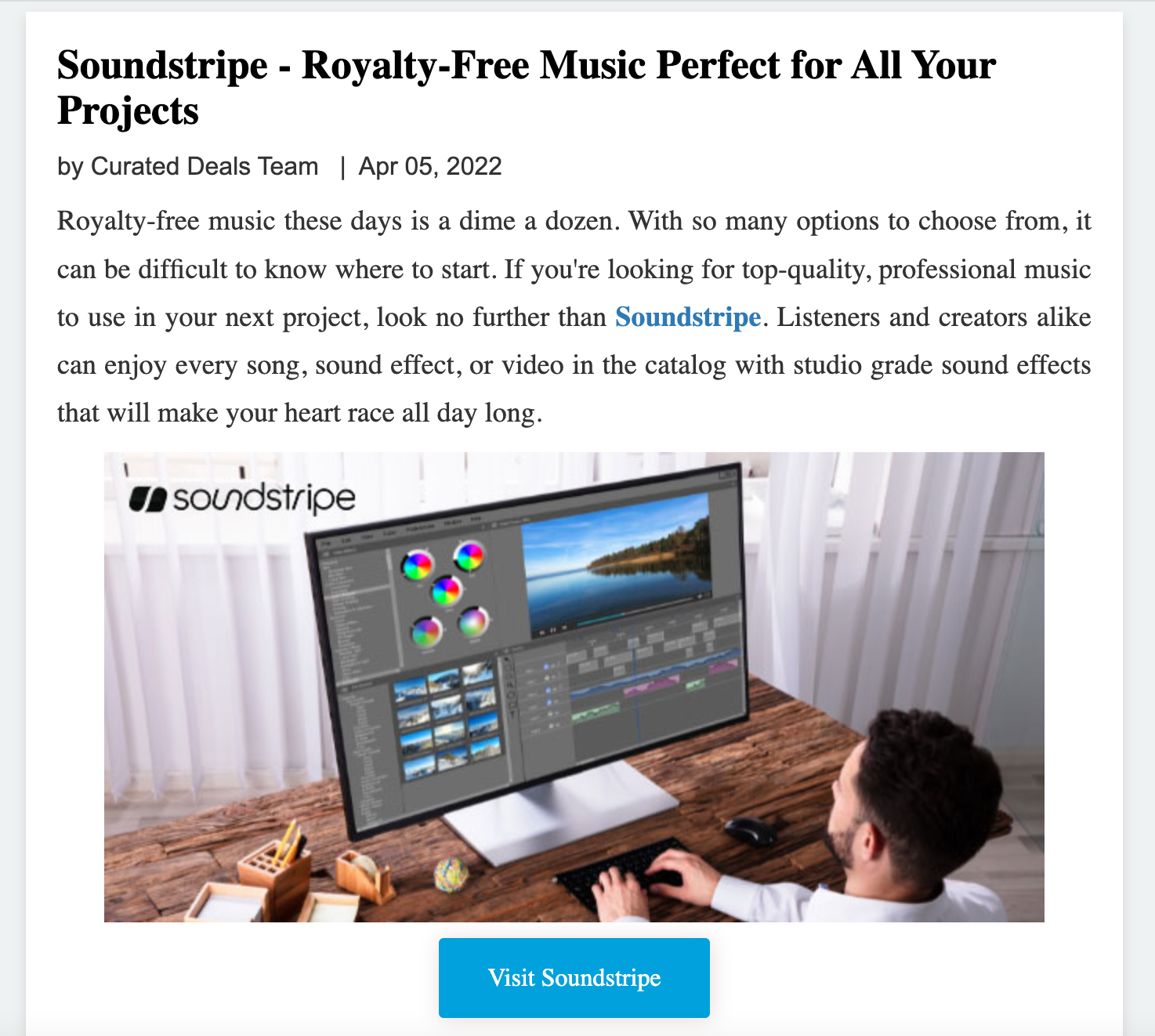 Although the website's name includes "deals" you can actually find reviews for a variety of different software (and lots of other stuff) on Curated Deals. This review covers what makes us distinct in a crowded royalty free music market and dives into which features matter most for creators.