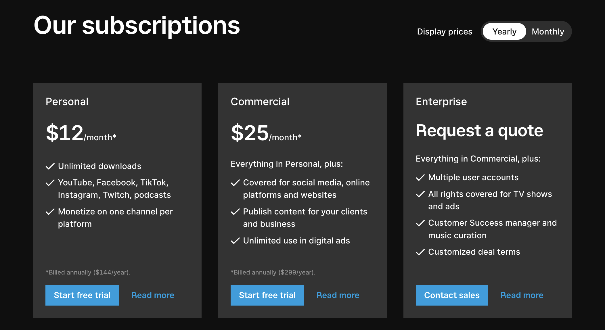 Epidemic Sound's model requires an active subscription to use and maintain rights to licensed tracks. Once your subscription ends, so do your rights to use the music. That’s a critical distinction for long-term content creators or those producing evergreen content.