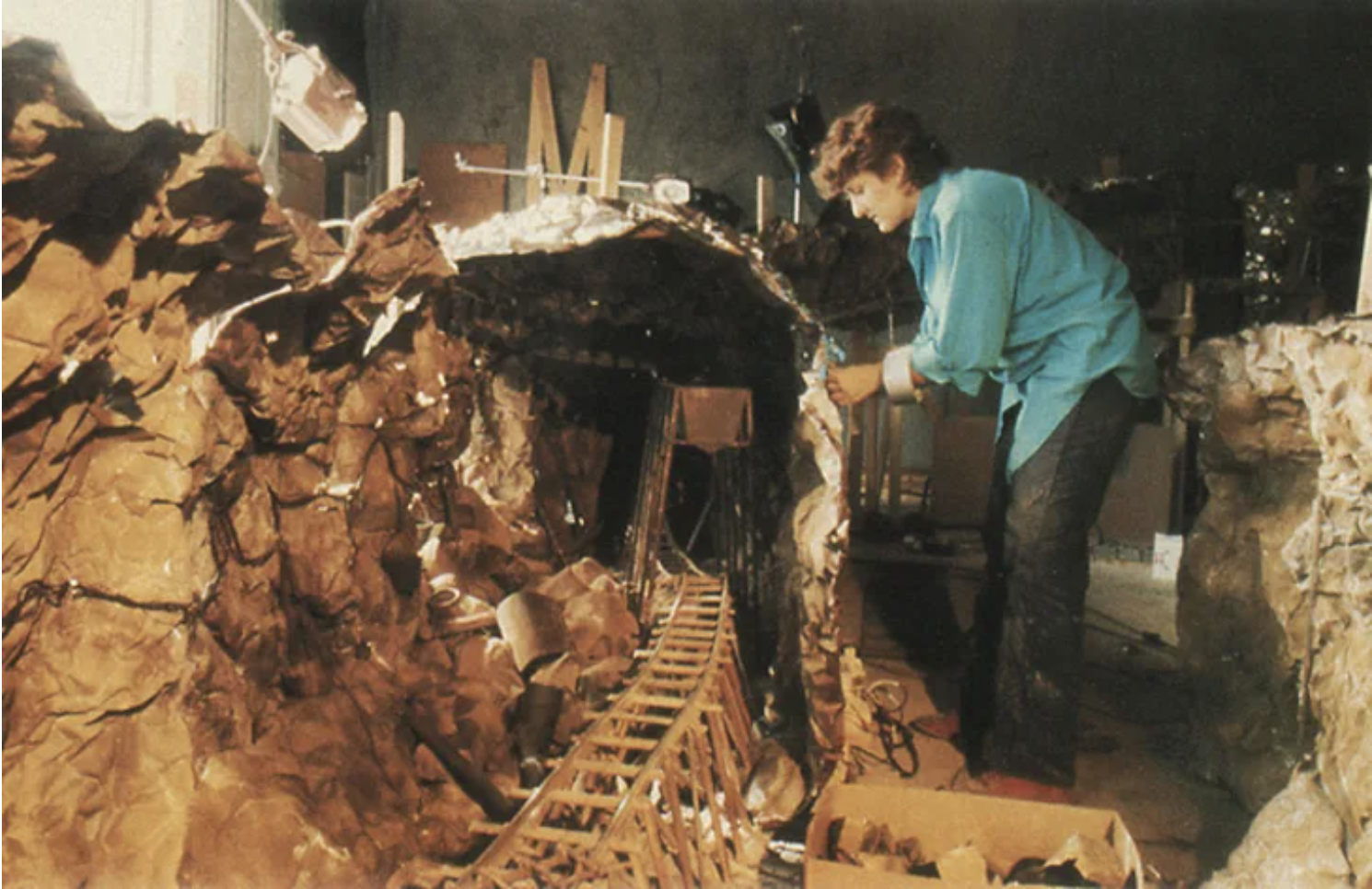Partial models like the one above from Indiana Jones and the Temple of Doom (1984) have been used by filmmakers as a compositing tool for years. It’s especially useful in scenarios where a stunt — like an intense chase scene through mine tunnels — isn’t logistically possible.