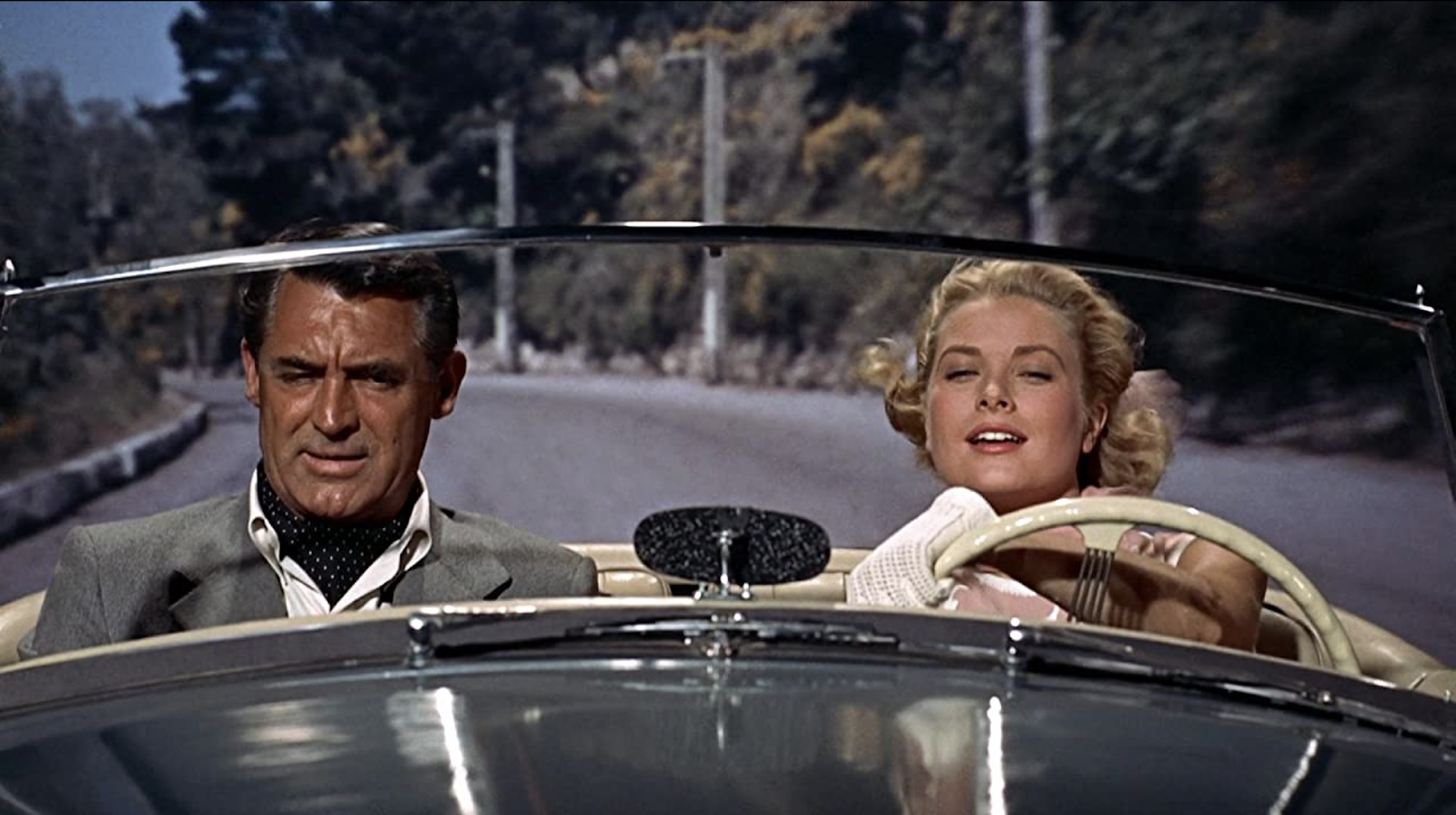 This still from To Catch a Thief (1955) is a prime example of how filmmakers used a technique called rear projection to project pre-recorded footage onto a screen — making it appear like the actors were actually on the road, not parked in a studio.