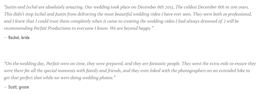 The wedding film industry is more about you than the services you offer — it’s safe to assume all of your competitors are providing video work. For that reason, selling your personality to your clients through social platforms is a big plus towards gaining trust and lengthening your email list.