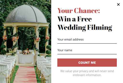 In this case, you may set aside a page dedicated to email marketing on your website. You can offer discounts, informative content, or amazing photos that would help in their wedding plans.