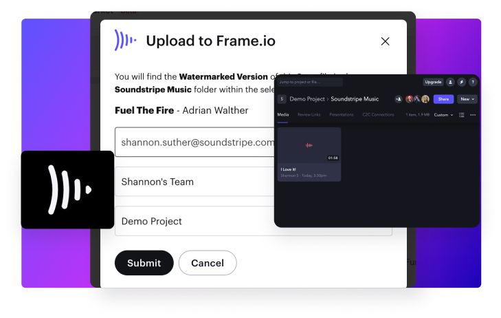 Collaborate seamlessly by integrating Soundstripe into your post-production workflow with Frame.io.