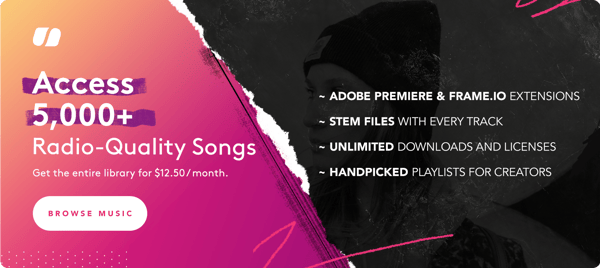 For example, Soundstripe provides thousands of radio-quality songs in one convenient subscription. That means unlimited access to our entire library (yes, lots of radio-quality pop music).