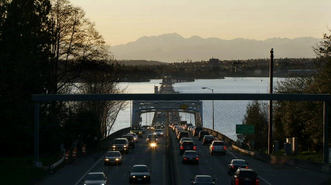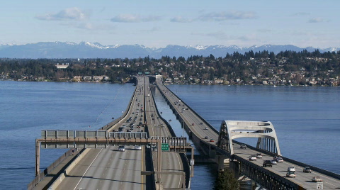 A floating bridge on Lake Washington, time lapse.