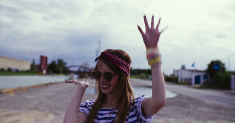 Teenage girl listening to music through headphones