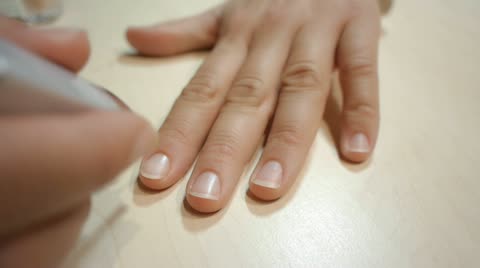 Macro Camera View Of Woman Painting Her Own Nails With Transparent Nail