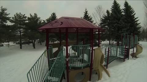 Empty swing set swining in strong winds at sunset - somber sad mood